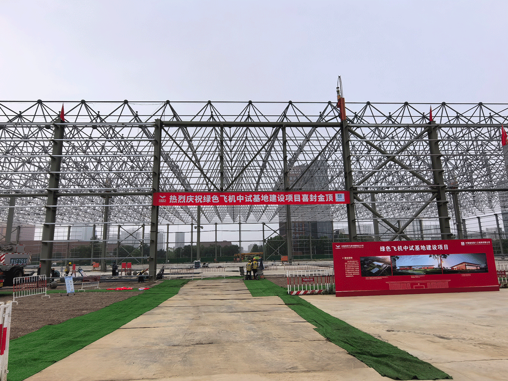 正在建設機庫,是長度205米,跨度96米,鋼結構屋蓋提升總用鋼量1000余噸,本次整體提升網架設置了7個泵站、26個提升點位,采用電腦全程同步控制提升。29天圓滿完成了項目的拼裝、焊接、提升任務。